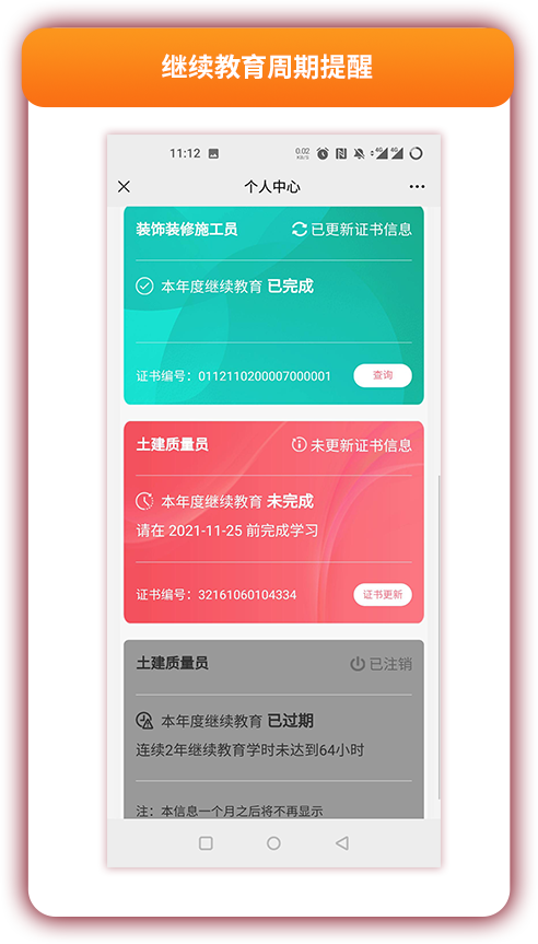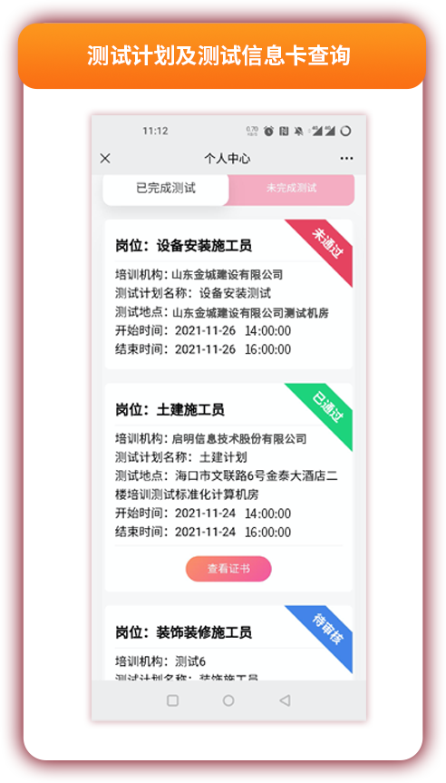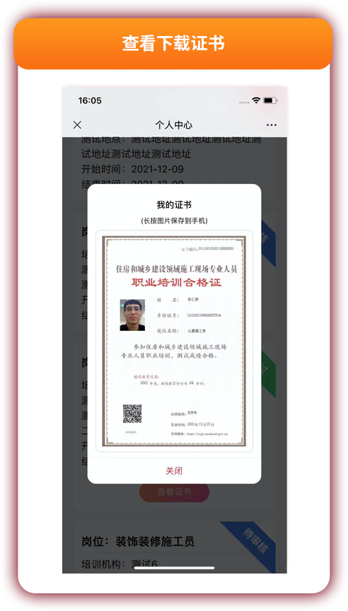 一键绑定个人信息,随时随地查看下载证书;